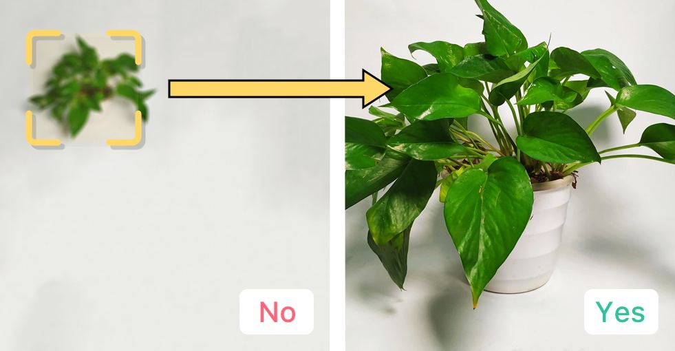 1. Focus the plant at the center of the frame, avoid dark or blurry images.